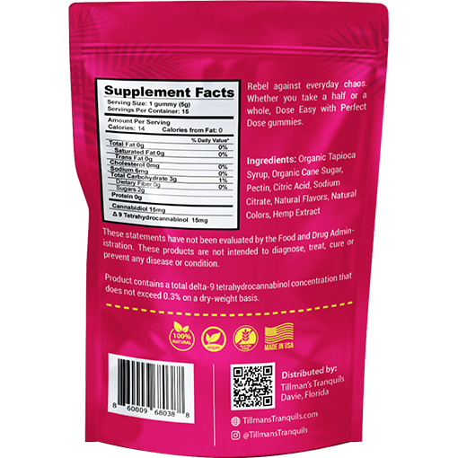 Our Perfect Dose line of THC gummies ensures precise dosing, whether you choose to enjoy a half or a whole gummy. Simply cut the gummy along the perforated line for your preferred serving.
